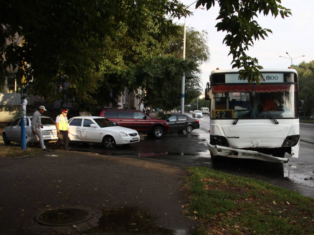 В Усть-Каменогорске столкнулись автобус и два автомобиля