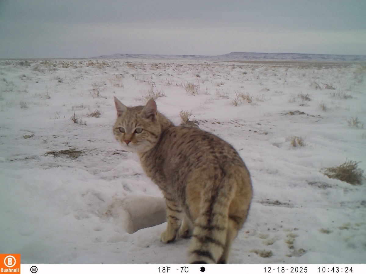 Фотоловушка запечатлела степную кошку
