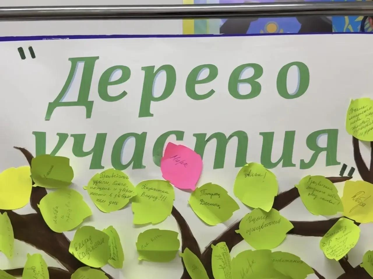 На специальных стикерах в форме листьев жители пишут слова поддержки и добрые напутствия Казахстану, после чего прикрепляют их к символическому дереву. Среди пожеланий чаще всего звучат слова о мире, благополучии и единстве.