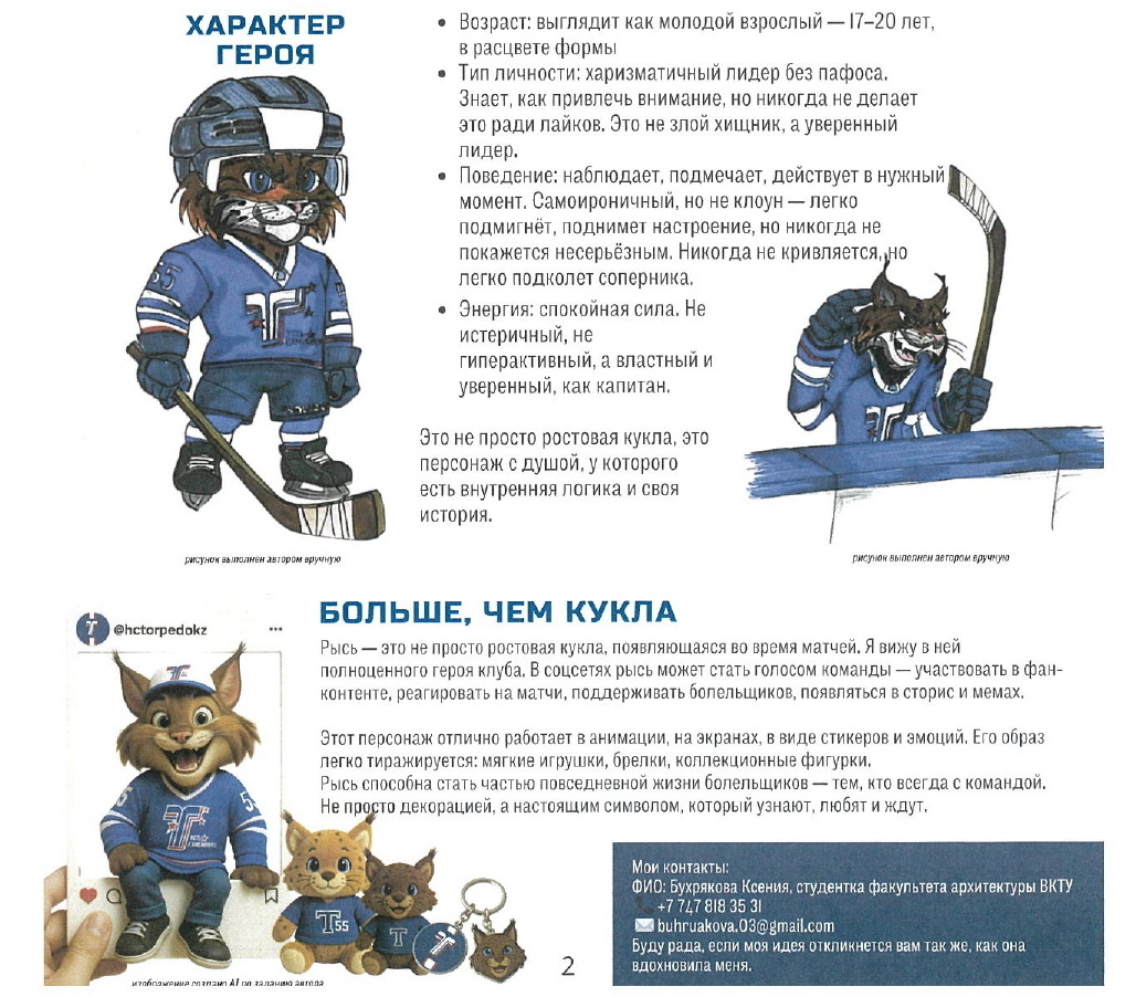 Хоккейный клуб «Торпедо» при поддержке компании «Казцинк» провел конкурс среди болельщиков на лучший символ для команды. Участники прислали более 100 ярких и креативных эскизов, из которых жюри отобрало десять самых запоминающихся. Финальным этапом стало народное голосование. По его итогам жители Усть-Каменогорска выбрали новым талисманом команды рысь.