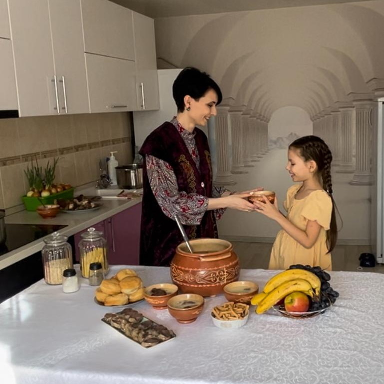 А еще Оксана умеет готовить самые разные блюда. В неделю Масленицы Оксана все семь дней печет блины разных видов и с разными начинками. В марте готовит Наурыз коже, и этому семейному рецепту ее научила «енешка» (свекровь).