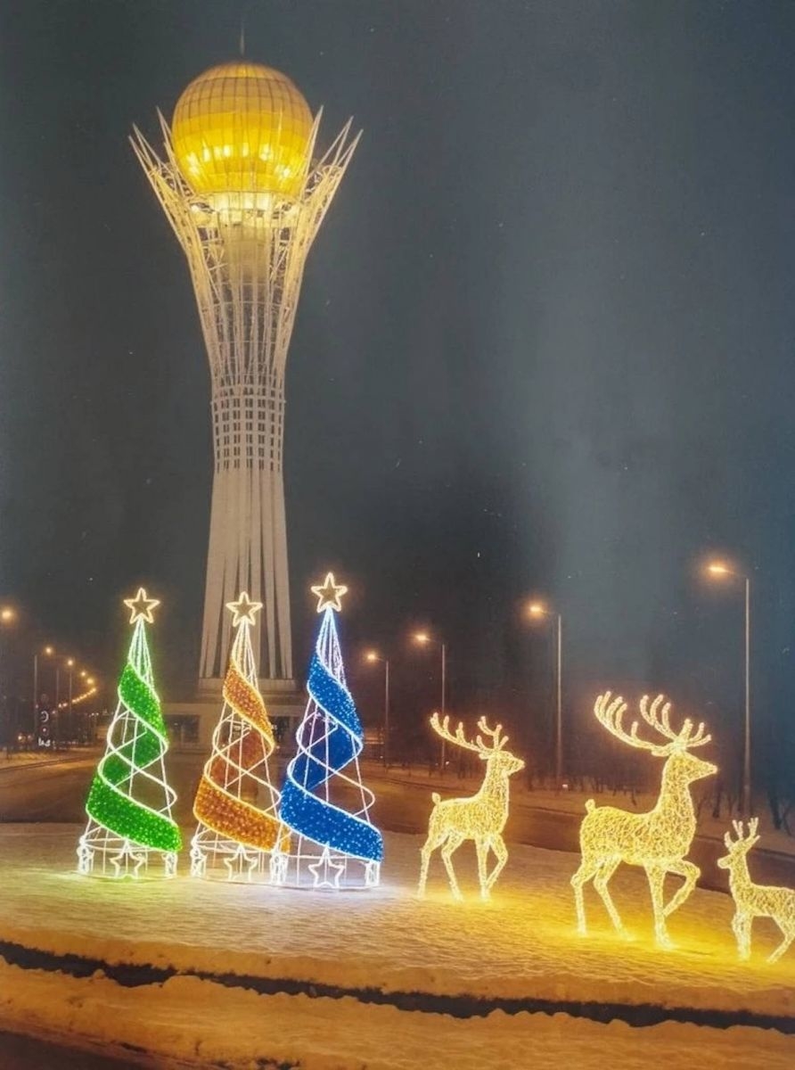 Также у монумента «Байтерек» планируется установить светящиеся стилизованные фигуры животных и неизменные символы Нового года — елочки.