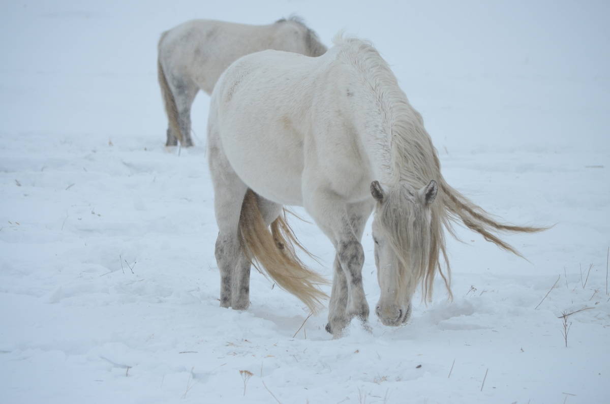 Несмотря на зиму, большую часть дня лошади пасутся в поле, самостоятельно добывая из-под снега толщиной до 40 сантиметров корм. Этот процесс называется тебенёвка. К счастью, в этом году волки ещё не давали о себе знать, а медведи уже залегли в спячку. Осенью же хозяева тайги из-за неурожая орехов и ягод задрали в Поперечном немало овец и телят. От их зубов и когтей пострадали и несколько жеребят.