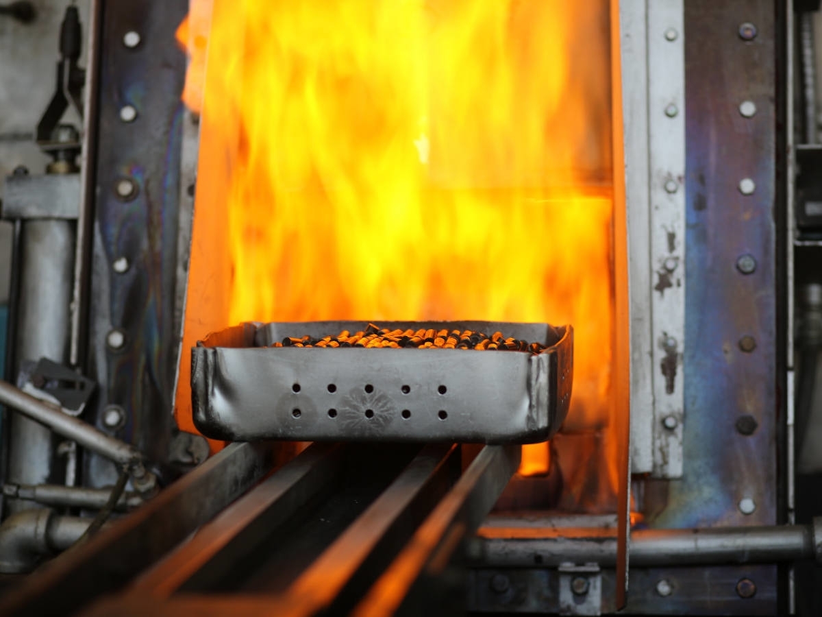 Қақтау пешінің аузы ашылып, кезекті «қайықтың» сонда бара жатқанын өз көзімізбен көруіміздің сәті түсті. Онда ол тура 30 сағат болады. +1750 градус температурада ұнтақ бөлшектері бір-бірімен бірігіп, берілген тығыздық пен құрылымға ие монолитке айналады. Мұндай әдіс толығымен дерлік қалдықсыз – пішін түпкі нәтижеге барынша жақын болып шығады.