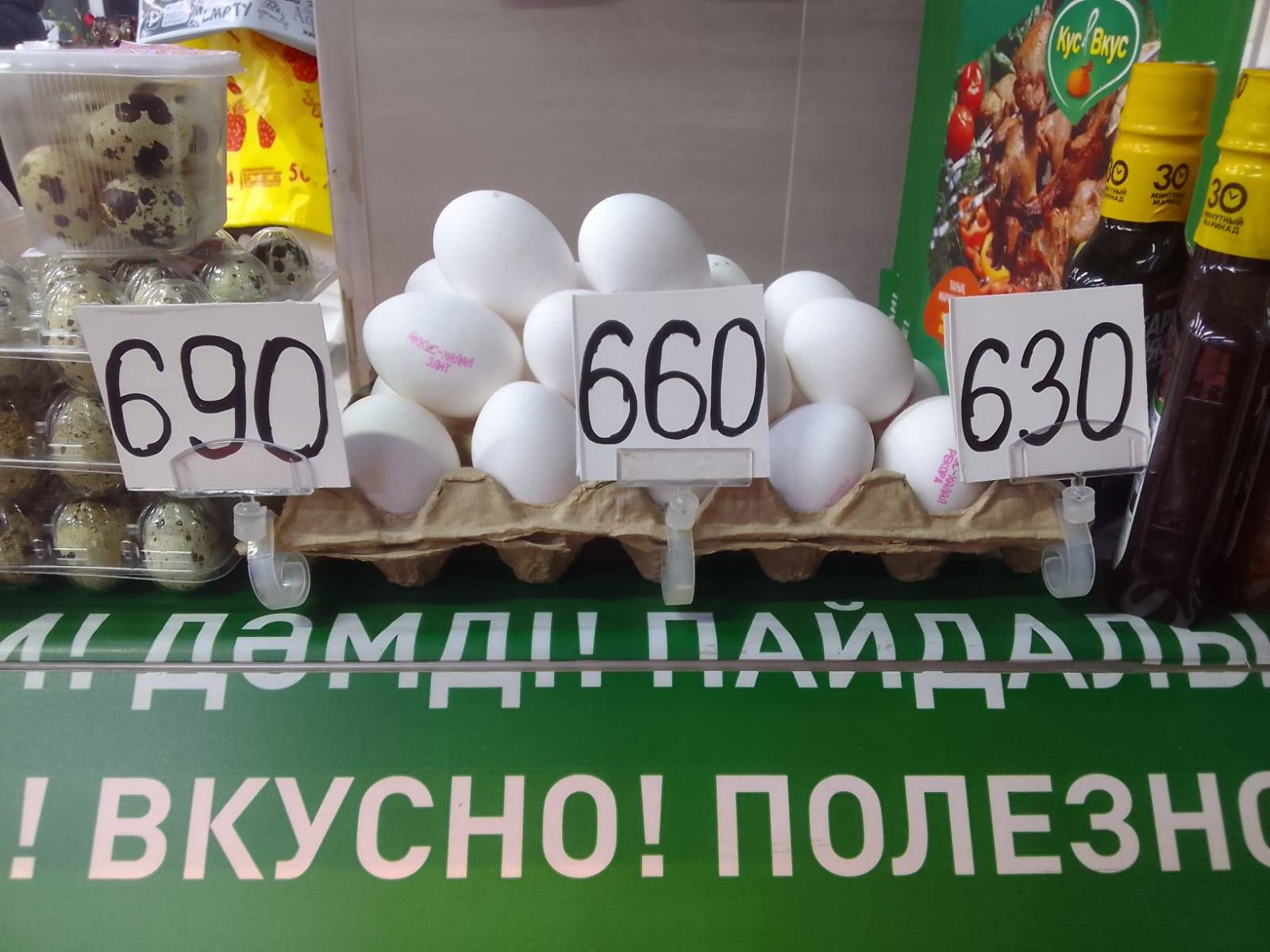 По наблюдениям горожан, яйца кое-где подорожали сразу на 80 тенге за десяток. Например, те, что стоили 550 тенге, теперь по 630 тенге,​, передаёт корреспондент YK-news.kz.