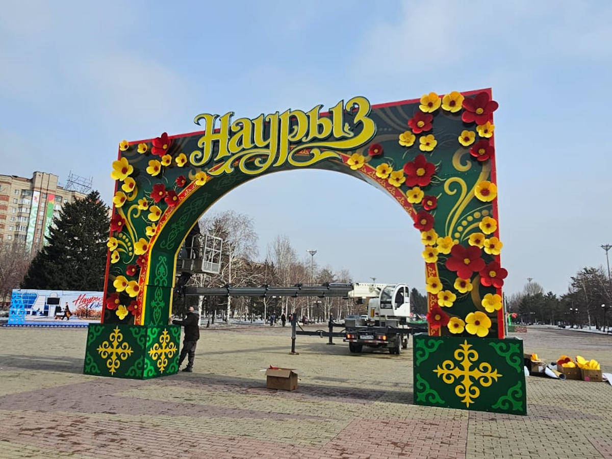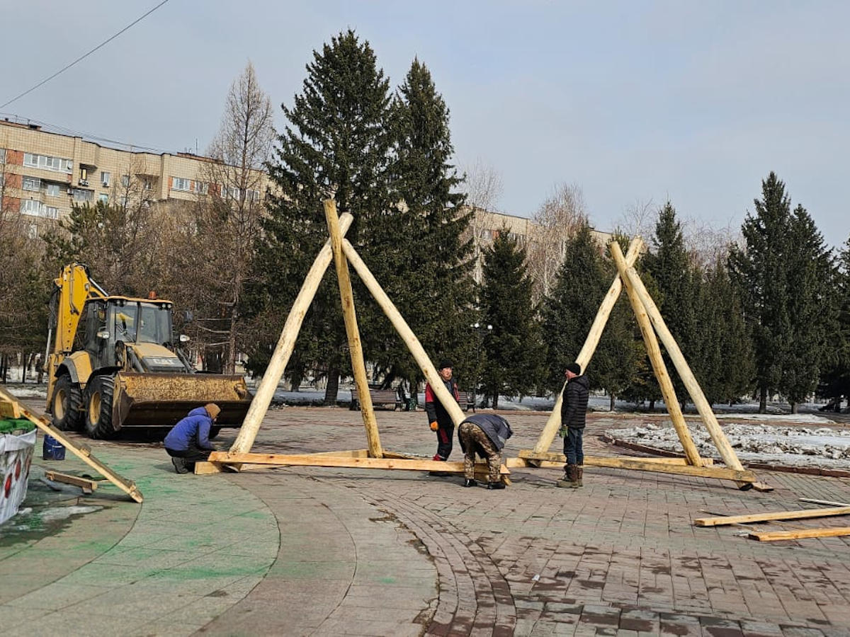 В Усть-Каменогорске на главной площади установили арку и алтыбакан