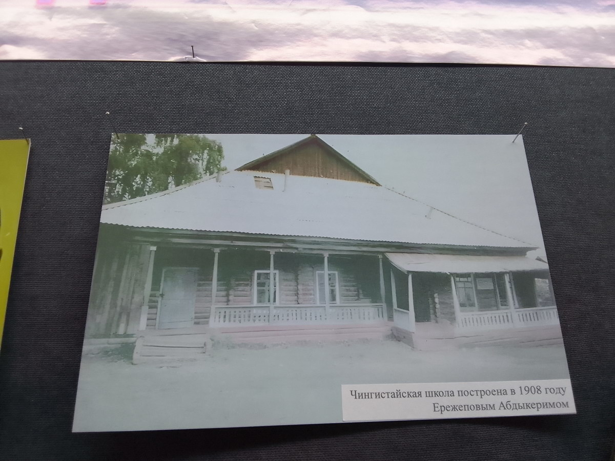 — Здесь вы можете увидеть архивные фотографии большой семьи Кумаша Нургалиева: братьев, сестер, жены, детей и деревянную композицию шежире — их родословную, — рассказала преподаватель специальных дисциплин Высшего колледжа имени Кумаша Нургалиева Альфия Токтасынова. — На снимке в верхней части экспозиции — Чингистайская семилетняя школа. Сюда в 1933 году поступил учиться Кумаш Нургалиев, потому что в его родном селе тогда не было своей школы. В этой же школе училась и его будущая супруга — Канипа.