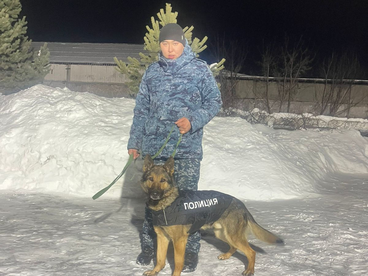 К поискам приступил младший инспектор-кинолог Саят Айткалиев со своим служебным псом Сарматом.