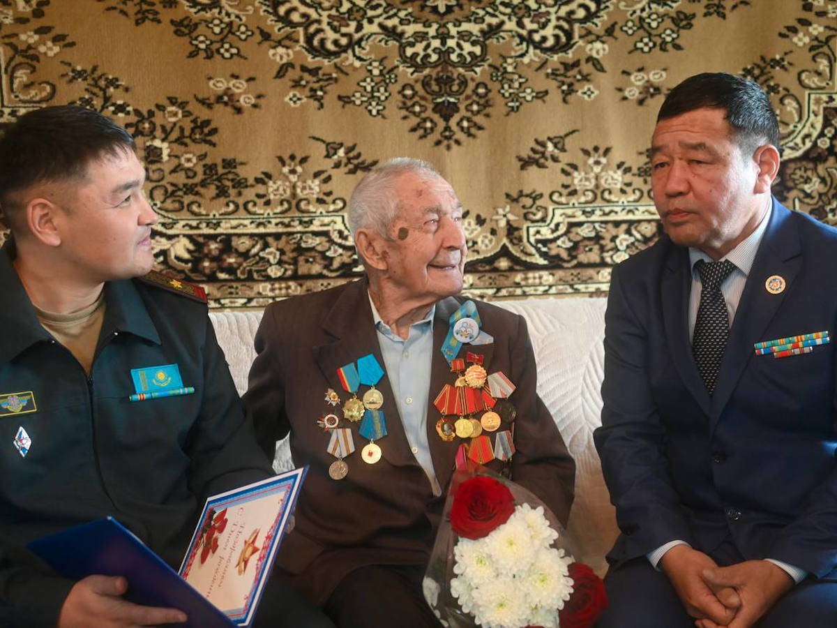 Сотрудники департамента по делам обороны Восточно-Казахстанской области поздравили ветерана с днем рождения, вручили поздравительное письмо от имени министра обороны Республики Казахстан генерал-лейтенанта авиации Даурена Косанова.