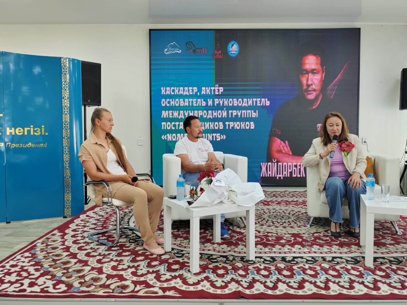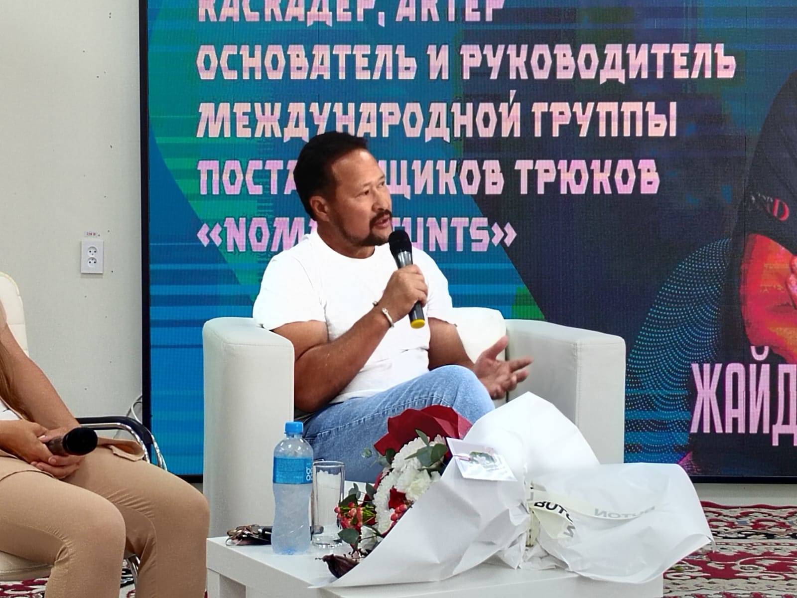 Сегодня в Усть-Каменогорске состоялась встреча представителей местной креативной индустрии и постановщика трюков, каскадера, актера Жайдарбека Кунгожинова. Он является основателем и руководителем международной группы профессиональных каскадеров «Nomad Stunts». Кунгожинов принимал участие в подготовке таких картин, как, например, «Неудержимые 2», «Мулан», «Марко Поло» и так далее.