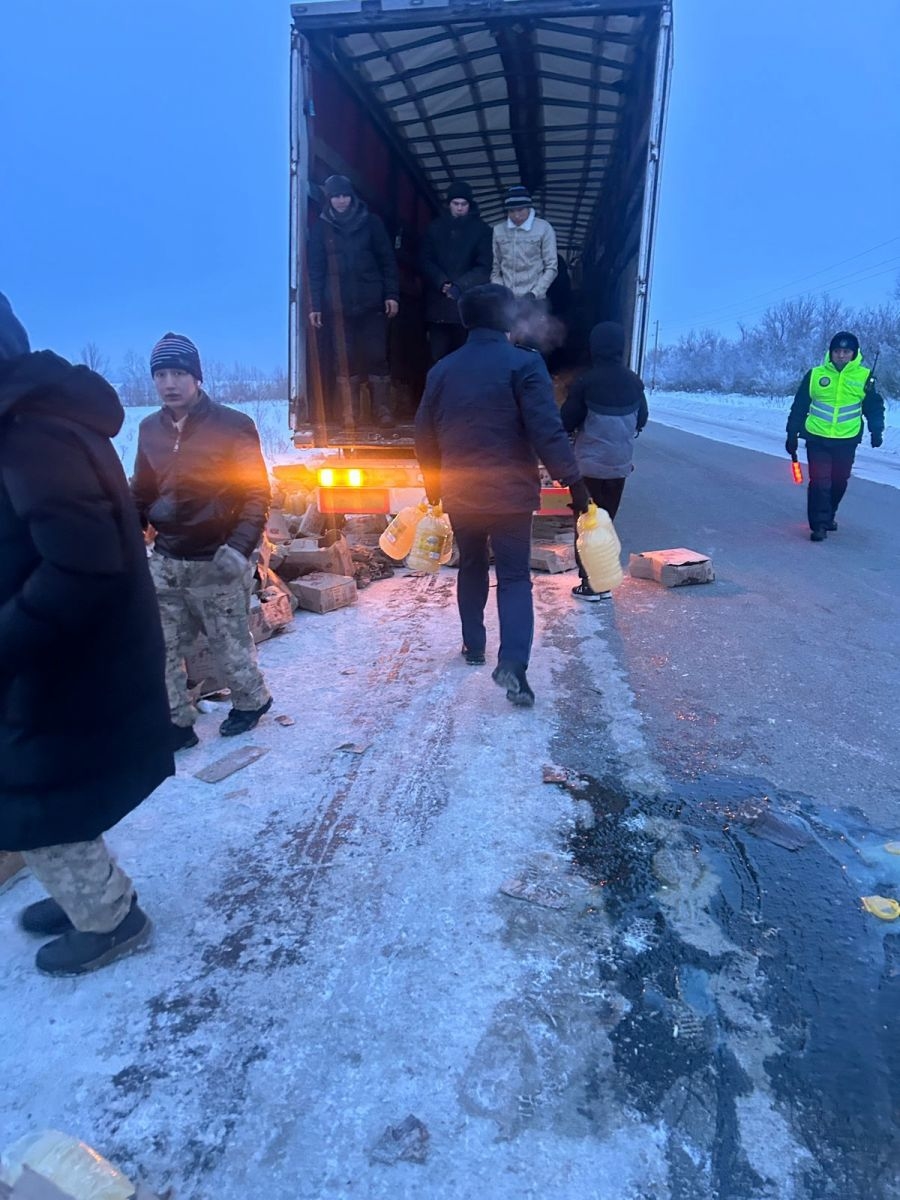 Грузовик опрокинулся на трассе Усть-Каменогорск – Семей: водителю помогали «всем миром»