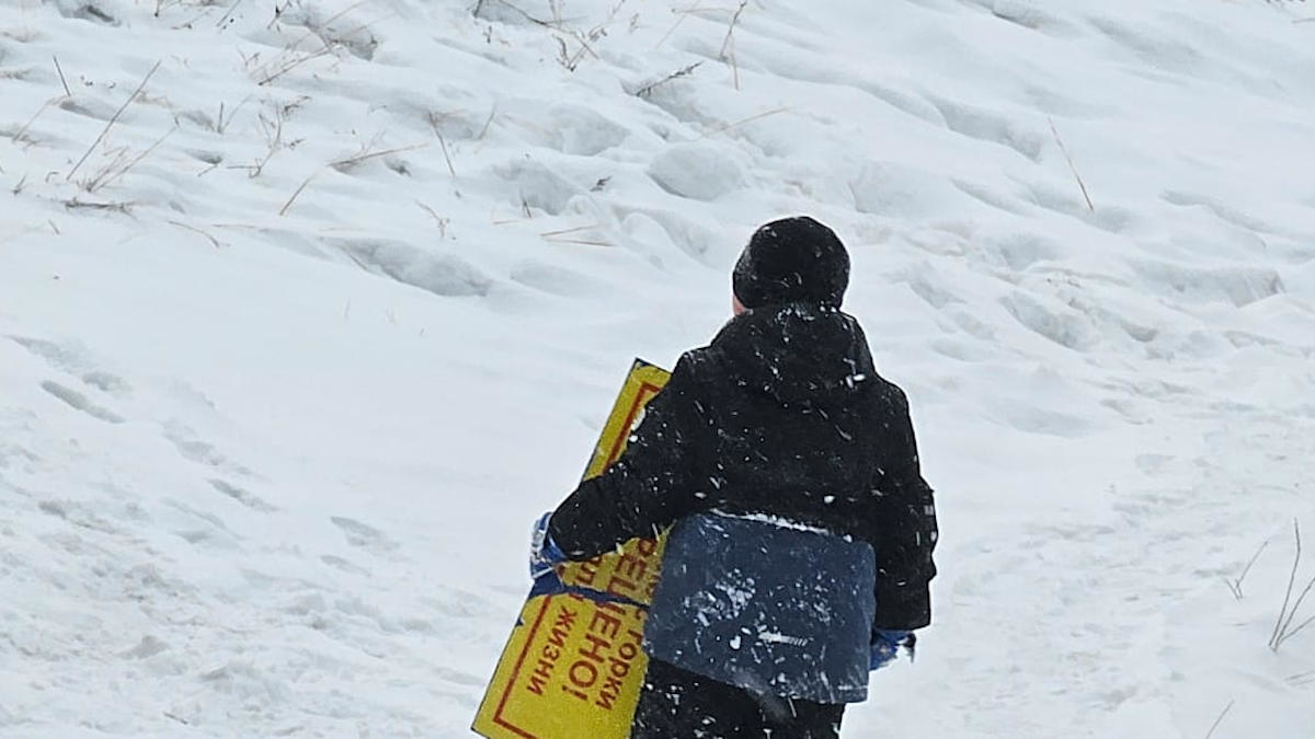 Сотрудники филиала ЦТУ № 1 разместили таблички, оповещающие о том, что «катание опасно для жизни». Однако, как убедился наш корреспондент, дети уже приспособили таблички для своих нужд: используют их вместо санок.