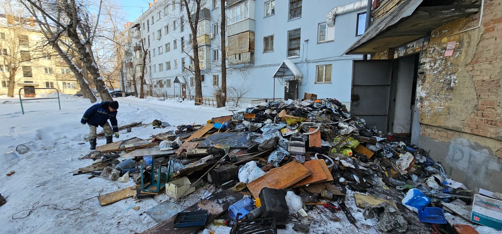 В Усть-Каменогорске убирают хлам, который пожарные вытащили вчера из горевшей квартиры