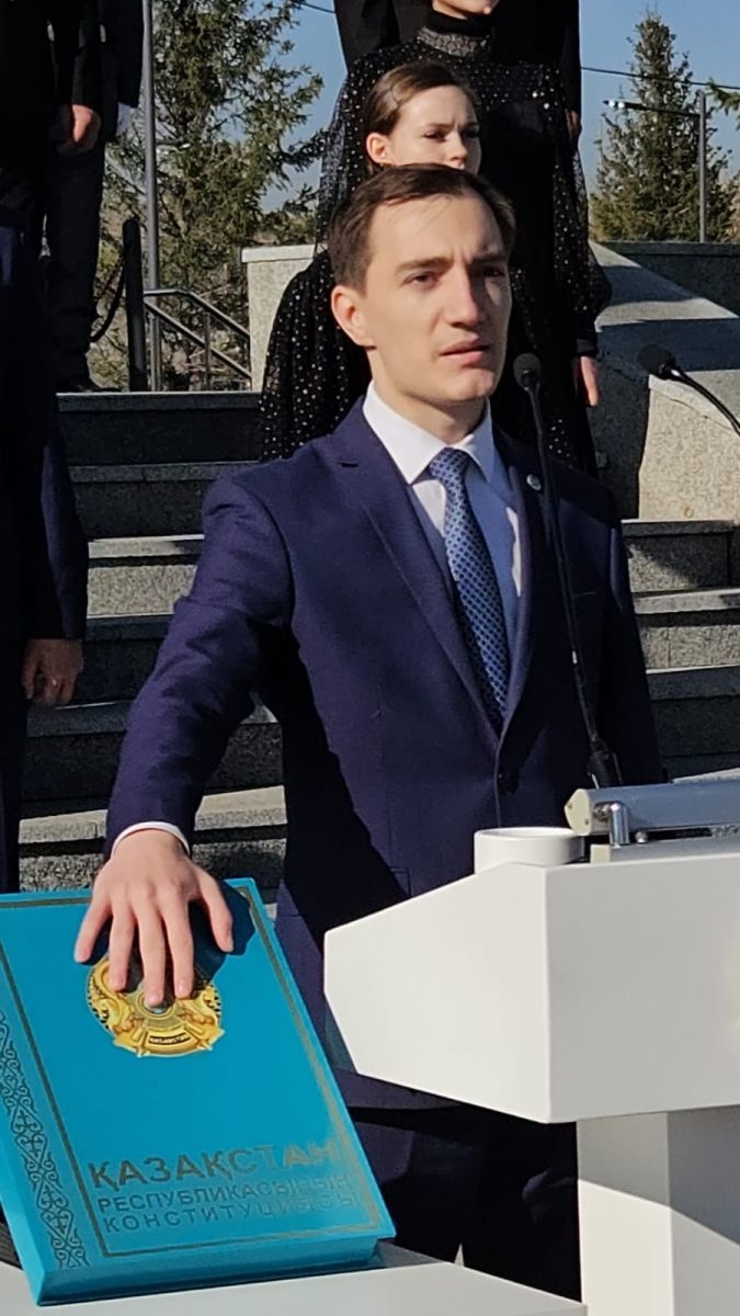 Вступившие в должность госслужащие торжественно приняли присягу на ступенях монумента, у подножия статуй основоположников Казахского ханства. Ерлан Базарбаев, Айгерим Умирзакова, Евгения Завьялова, Жансая Камзина и Даниил Гончар поклялись в верности народу и президенту, соблюдении Конституции и законов, добросовестном выполнении обязанностей и защите прав граждан и интересов государства, а также получили служебные удостоверения и значки. После принятия присяги молодые люди будут трудиться в различных структурах города и области.