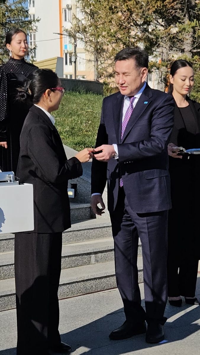 Недавно приступившие к своим обязанностям чиновники, получили служебные удостоверения в ходе праздничной акции у Монумента Независимости, передает корреспондент YK-news.kz.