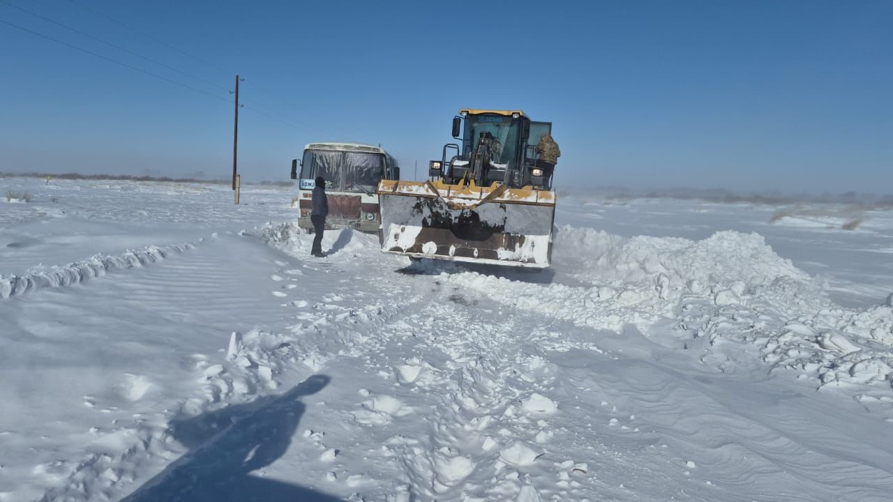 В Зайсанском районе на дороге районного значения автобус марки ПАЗ не мог продолжить движение из-за переметов, передает YK-news.kz.